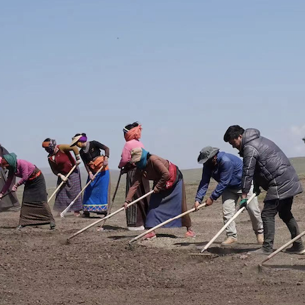 在上一轮执行中,项目已探索出“种草”“竖招鹰架”“线上驻村”三类有效方式,将当地牧人培养成为有意愿、有能力参与社区草场保护与恢复的主体。本执行年,项目通过组织方式的进一步探索与优化,取得了更明显的效果。在项目的影响和技术支持下,一位先锋牧人自发联系哇代村,由村集体召集了22名牧人,在23.1亩黑土滩上共播撒草籽400余斤,竖立招鹰架10根。项目团队还组织了42位牧人,在甘加六个部落村的公共草场上约118亩黑土滩,播撒了400公斤草种并安置了35根招鹰架,以解决公共草场各部落村都不愿带头行动的问题。通过上述实操、课堂培训及青海访学,项目还招募和培养出五位当地牧人监测员,他们不仅掌握了科学监测草场恢复成效的方法,能独立完成定期的监测记录,共同撰写观察评估报告,还总结出了“坡面条播、足量压实、草籽与羊粪渣混播”、“将科学种草方式与煨桑的传统供养方式结合更能获得牧人支持”等成功经验,并提炼出了从联络部落村、选址、选草种、定时间、定种草方式、种草、竖鹰架到后期跟踪监测的一整套流程和技术方法。在项目的影响下,参与过草场恢复的牧人已能从之前被动参加,转变为独立开展和完成种草、制作和竖鹰架活动,有些牧人已自发在自己的草场开展试验。